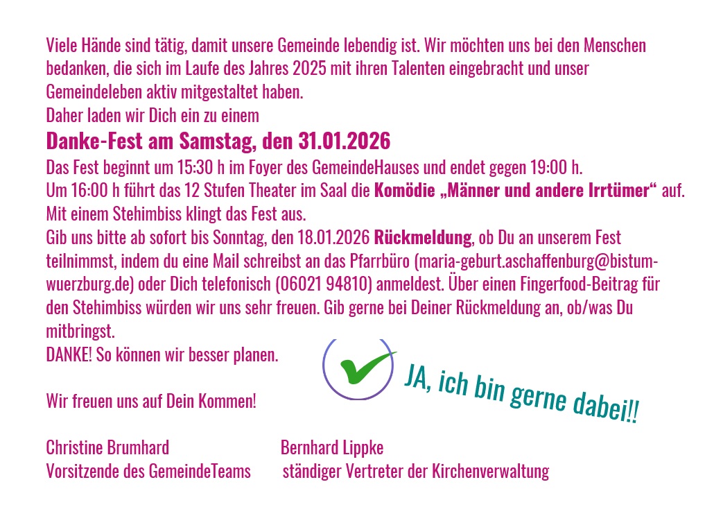 - Veranstaltungsort: GemeindeHaus Maria Geburt
